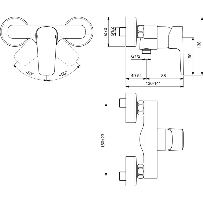 Sprchová nástěnná baterie Ideal Standard CeraPlan III B0716AA nabízí spolehlivý výkon a moderní design. Díky kovové ovládací páce s širokým rozsahem pohybu umožňuje přesné a pohodlné nastavení vody.