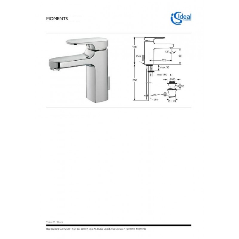 Elegantní umyvadlová baterie Moments A3903AA od Ideal Standard je vybavena pevným vývodem a odtokovou garniturou, což zajišťuje kompletní řešení pro snadnou instalaci. Kovová ovládací páka poskytuje plynulé a přesné ovládání teploty i průtoku vody.