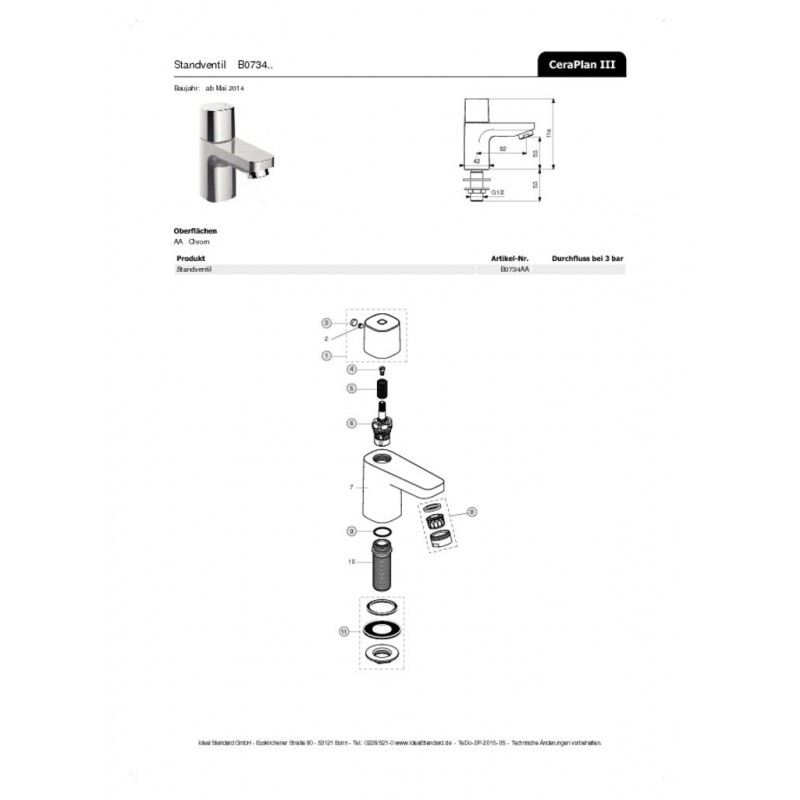 Praktická umyvadlová baterie CeraPlan III B0734AA od Ideal Standard je stojánková vodovodní baterie určená pro jeden přívod vody. Kvalitní chromová povrchová úprava zajišťuje odolnost a snadnou údržbu.