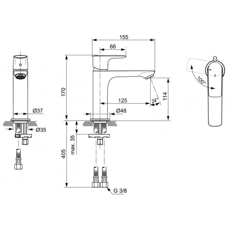 Výška baterie 170mm, výška vývodu 114mm, délka výtoku 155mm