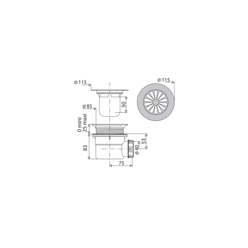 strainer Ø 115mm, for pipe Ø 41mm,